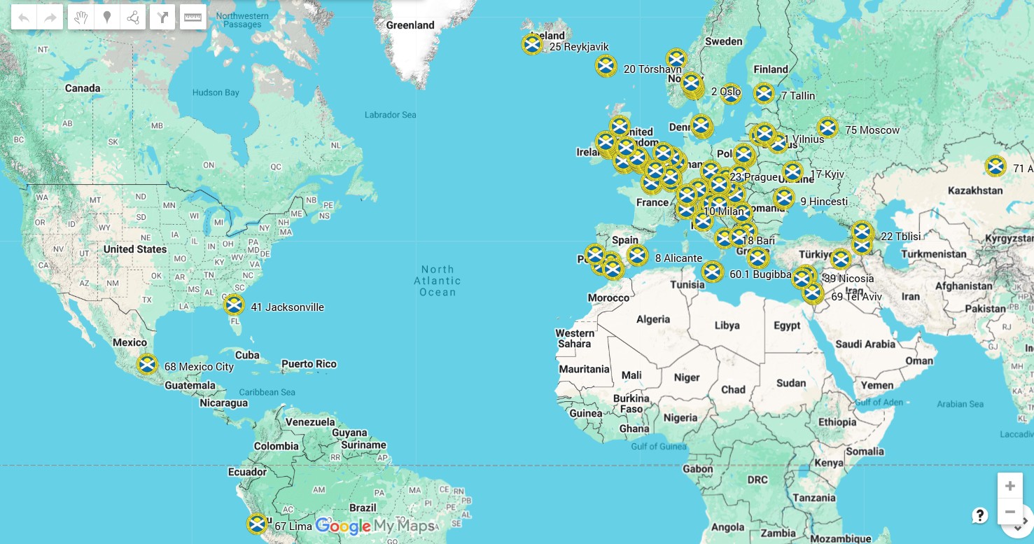 Click on the map below to see all of these summarised. Once open, you can zoom in to see more detail, as some countries/cities have received multiple donations. Just click on any badge to see the individual donation detail.